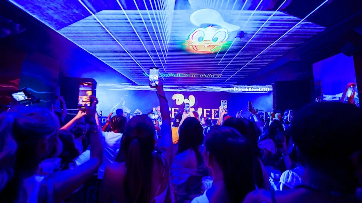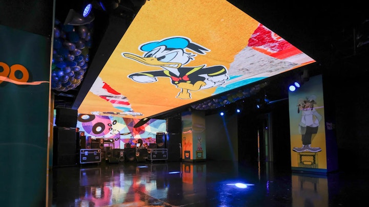 The task: To generate a plethora of bespoke Donald Duck graphics and animations across two enormous screens for a high-energy Bloc Party themed event. The night was headlined by none other than DJ PEE WEE, also known as Anderson .Paak, and attended by a star-studded crowd of celebrities, influencers, and Disney executives.