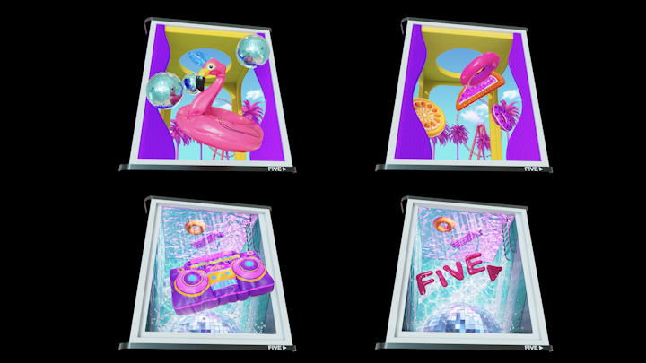 Right from the pitch, we knew this was a special project. The brief was to craft a series of cohesive films celebrating the offerings of staying with FIVE in a completely fantastical reality. The only limitations were that of our imaginations, and we had an absolute blast coming up with off-the-wall sequences that would reflect concepts such as music and nightlife, food and drink, and fashion to name a few. Working collaboratively each step of the way, we were able to fuse these 30-second films with an incredible sense of personality and fun, not to mention perhaps the wackiest hairstyle ever to grace the super-big screen. Once our designs were locked, we used our entire arsenal of Cinema 4D, After Effects, Houdini and Maya to bring these animations to life.
